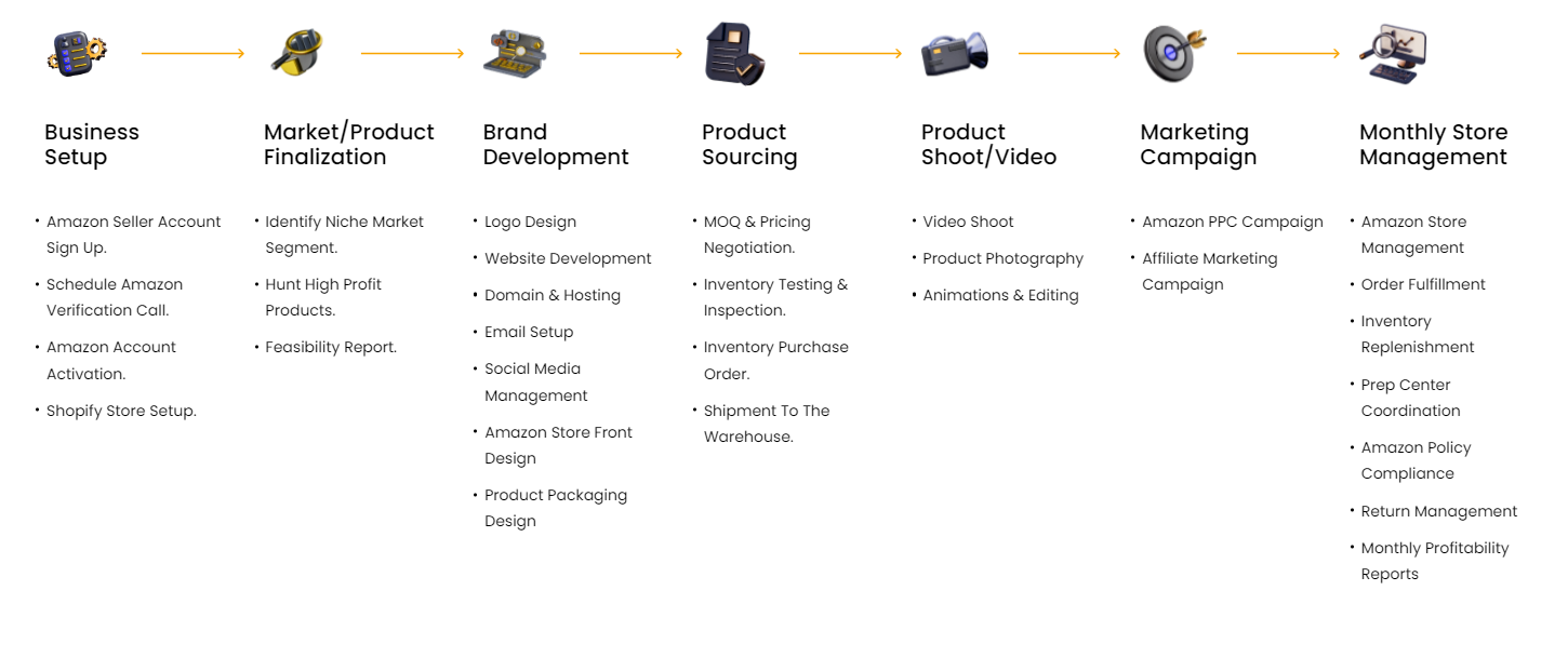 We build thriving Amazon stores, on-demand, at your pace. Skip overwhelm, maximize your sales, & conquer the marketplace with one step at a time. Our “Just-in-Time” approach delivers tailored support, exactly when you need it.